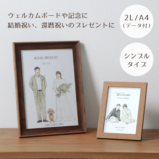 【2L/A4】シンプル似顔絵 (データ付き・送料込み)| ウェルカムボード 結婚祝い 記念品に